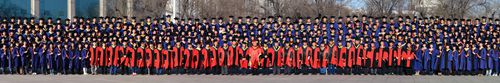 毕业典礼圆满结束后,学校领导、校学位评定委员会委员、导师代表及全体毕业研究生在西区一号楼前合影留念。