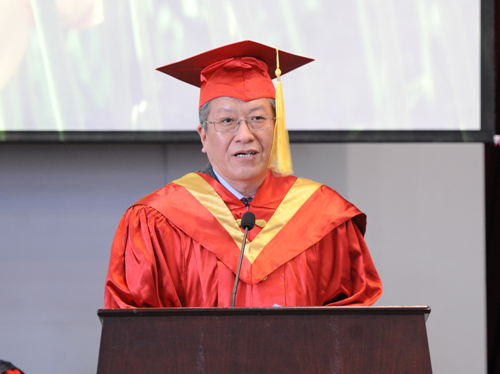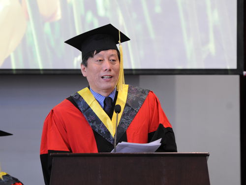 校学位评定委员会主席、校长李大勇在典礼上作了精彩讲话。李大勇校长代表学校向同学们昔日的勤勉刻苦、学有所成表示由衷的祝贺,向始终给予同学们大爱的家人、指导同学们成长进步的导师、一直关心帮助同学们的所有亲友师长致以诚挚的感谢和崇高的敬意!