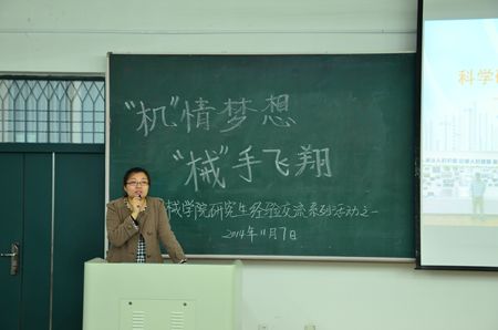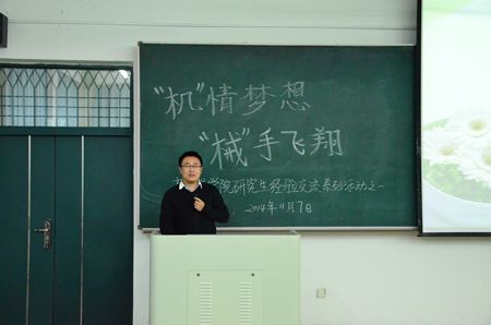 为增强我校研究生的综合素质能力,传承科研学术精神,机械动力工程学院研究生党支部于11月7日晚6点,在新主楼B112教室开展以“激(机)情梦想,携(械)手飞翔”为主题的研究生经验交流会。研究生部颜廷亮老师、机械学院研究生辅导员贾冬雪老师出席本次活动。