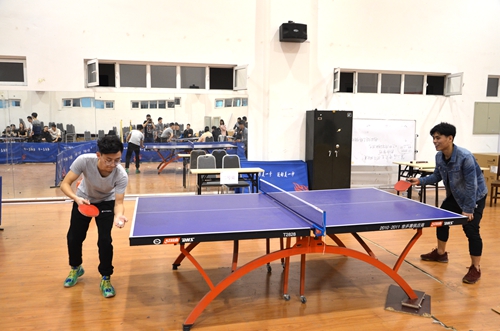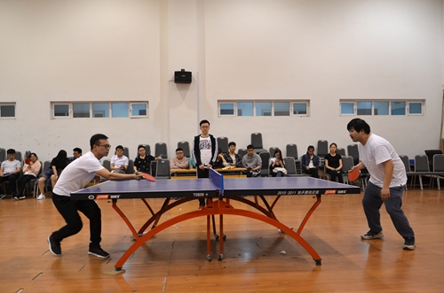 比赛设四个项目:男子单打,女子单打,男子双打,混合双打。本次比赛共40人参赛,其中单打38人,双打10组。本着“公平,公正,公开”的原则,从4月18日开始,每天晚6点准时进行比赛。比赛由初赛、半决赛和决赛组成,其中初赛和半决赛每局比赛为十一分胜出,采取五局三胜制;决赛每局比赛为十一分制,采取七局四胜制。每局比赛精彩迭出,每一位参赛选手都积极进取,奋力拼搏,展现了理工研究生优良的体育作风。众多选手各展风采,他们用精彩的球技赢得了场外观众的热烈掌声。4月20日,历时3天的研究生乒乓球比赛在大家的掌声与欢呼声中终于落下帷幕。经过激烈的角逐,最终,吕爽和张婷分别摘得男子组和女子组的桂冠,王振东、颜景博获得男双比赛的冠军,混双冠军则由张婷和赵磊获得。