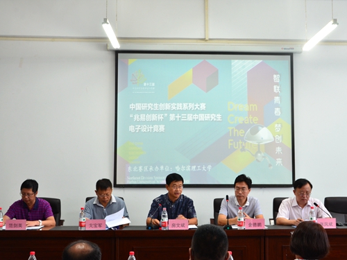 赛事组委会秘书长、清华大学电子工程系党委书记金德鹏教授,代表组委会向哈尔滨理工大学对赛事的精心组织筹备表示感谢,向各位专家评委的在炎炎夏日抽出宝贵时间参与评审表示感谢。希望各位评委能够本着“公开、公平、公正”的原则,真正把代表东北赛区的高水平作品挑选出来。