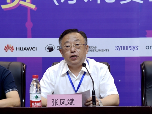 中国电子学会副秘书长洪京一,代表组委会感谢我校对赛事的全力支持和精心筹备。洪京一副秘书长指出当今时代仍要坚持创新驱动,大力推进新技术、新产业、新服务、新模式的成长,希望大家携起手来共同努力,推动中国电子信息领域的科技创新和产业发展。