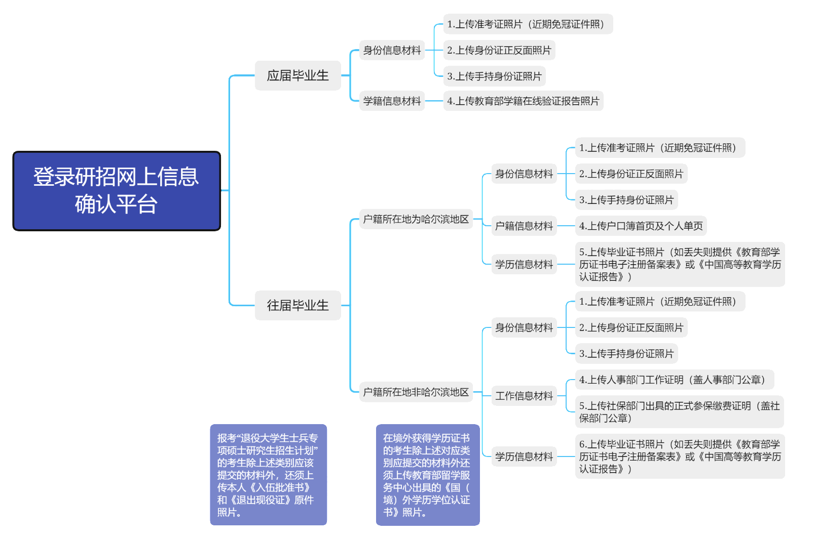 6.报考“退役大学生士兵专项硕士研究生招生计划”的考生除上述类别应该提交的材料外,还须上传本人《入伍批准书》和《退出现役证》。